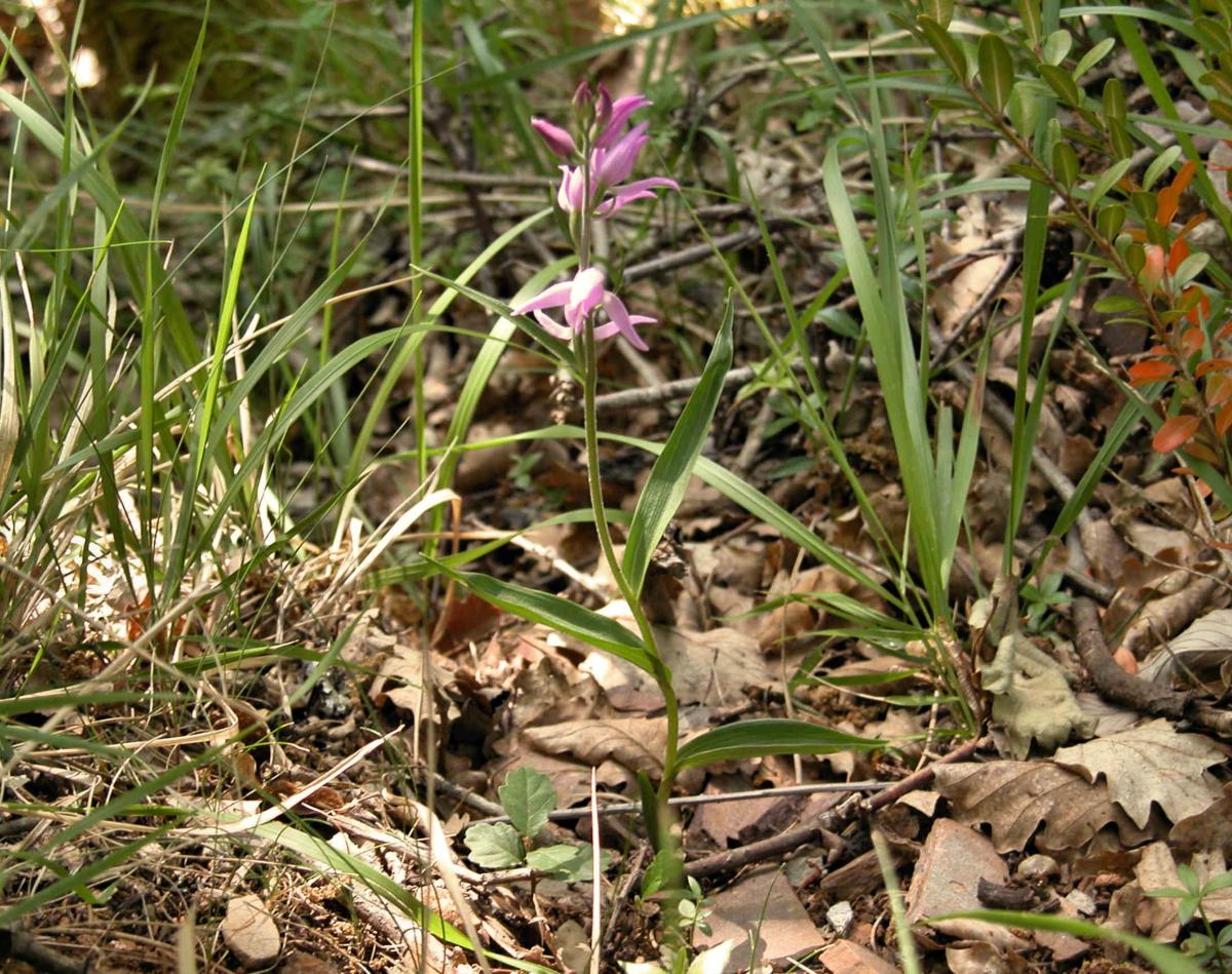 Fleurs : d'un rose vif, assez grandes, 5-15 en épi lâche ; bractées herbacées, égalant ou dépassant l'ovaire; divisions du périanthe ovales-lancéolées, toutes acuminées, à peine plus longues que le labelle; celui-ci muni à la base de 2 lobules latéraux dressés étroits, à languette ovale-acuminée marquée de crêtes sinueuses un peu jaunâtres; ovaire grêle, pubescent-glanduleux