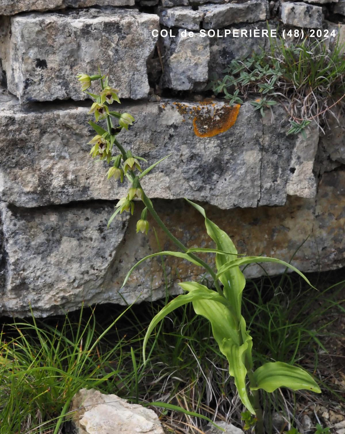 Perennial plant, 20-60 cm, less robust than Epipactis helliborine .