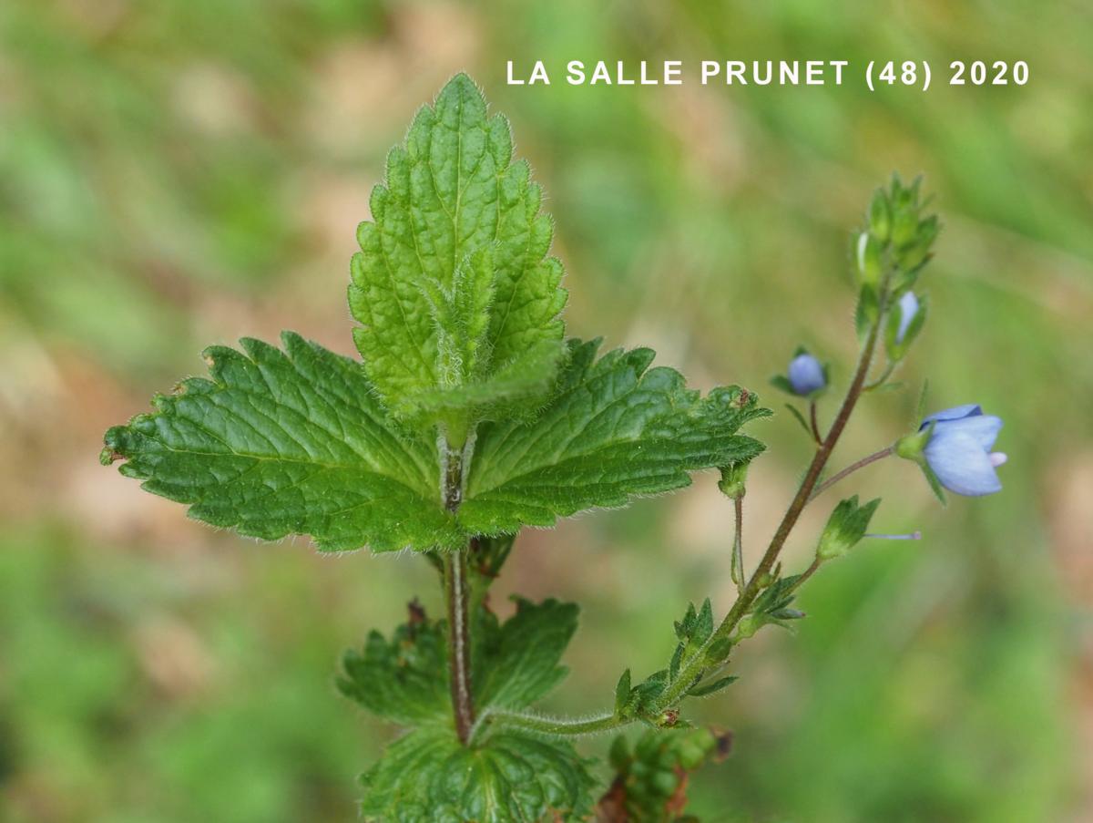Fleurs : bleues, grandes, en grappes axillaires, souvent opposées, lâches, multiflores; pédicelles plus longs que le calice et les bractées; calice poilu, à 4 lobes peu inégaux, lancéolés; corolle 2 fois plus longue que le calice, à lobes arrondis; style un peu plus long que la capsule